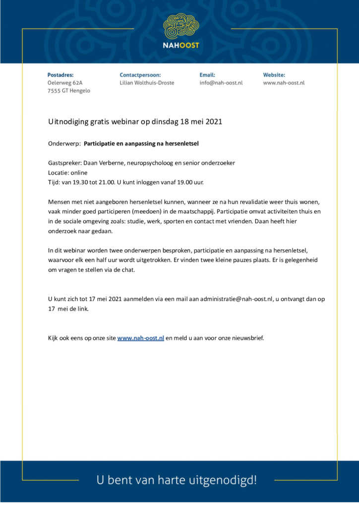 Uitnodiging (bijeenkomst) 18 mei as.